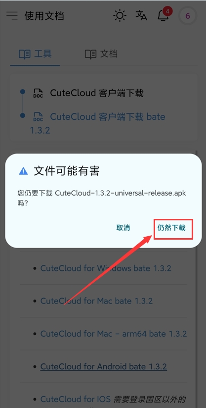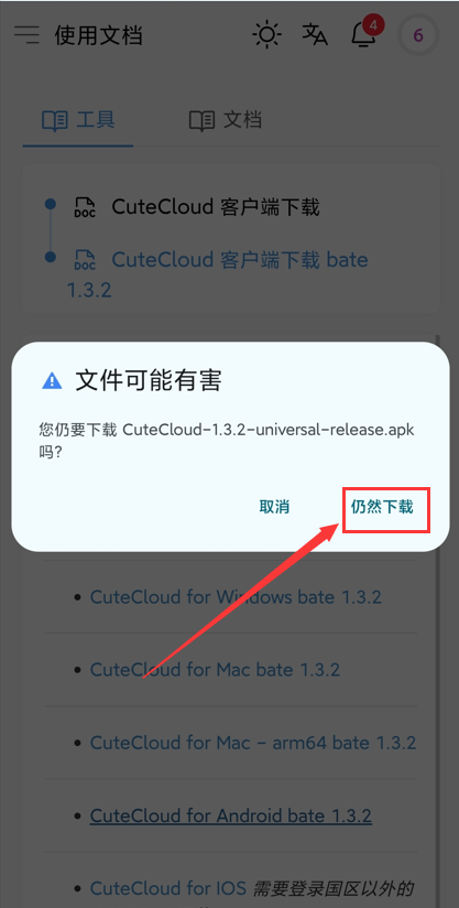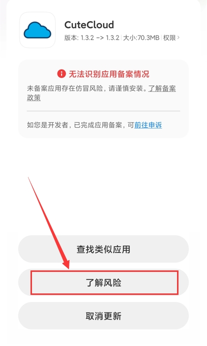 若提示应用未备案有风险等问题,请参考下图中类似的做法