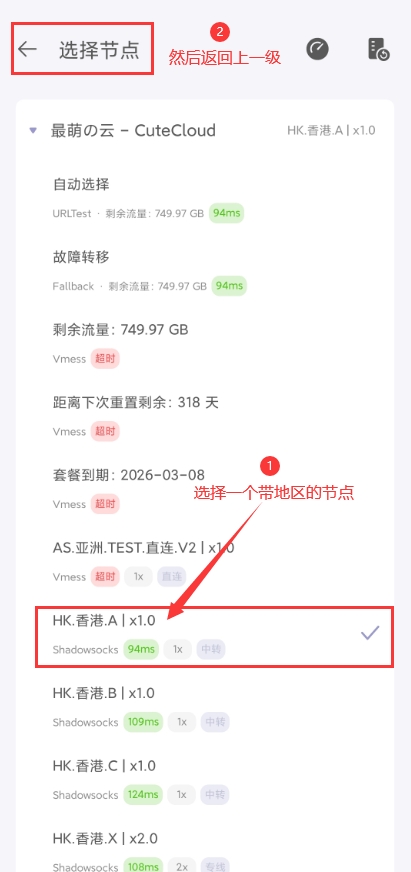 节点中有自动选择和故障切换节点,这两个均可以自动选择对应策略的节点使用。
